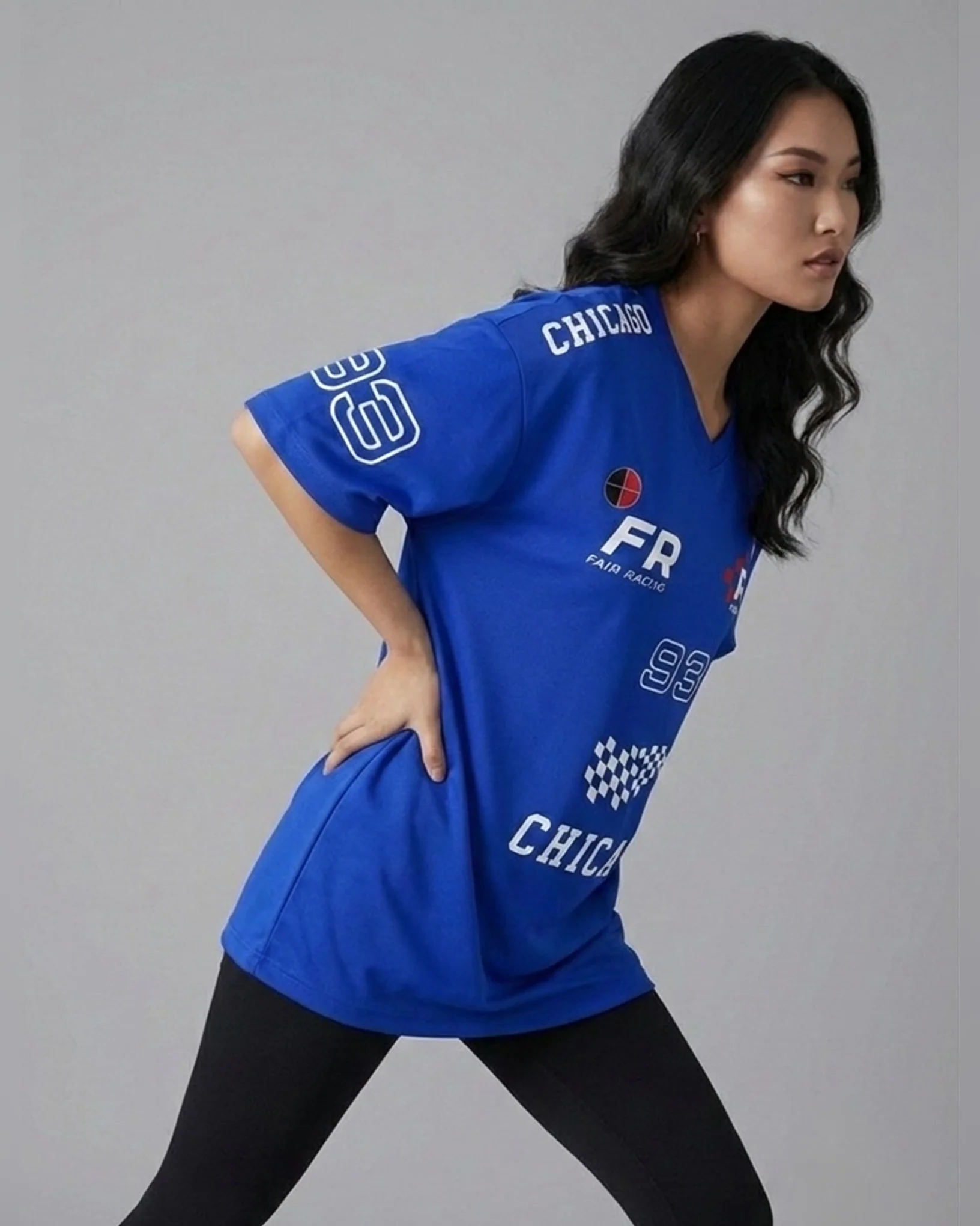 Team FR Chicago Graphic Drop Shoulder Oversized T-shirt Royal Blue